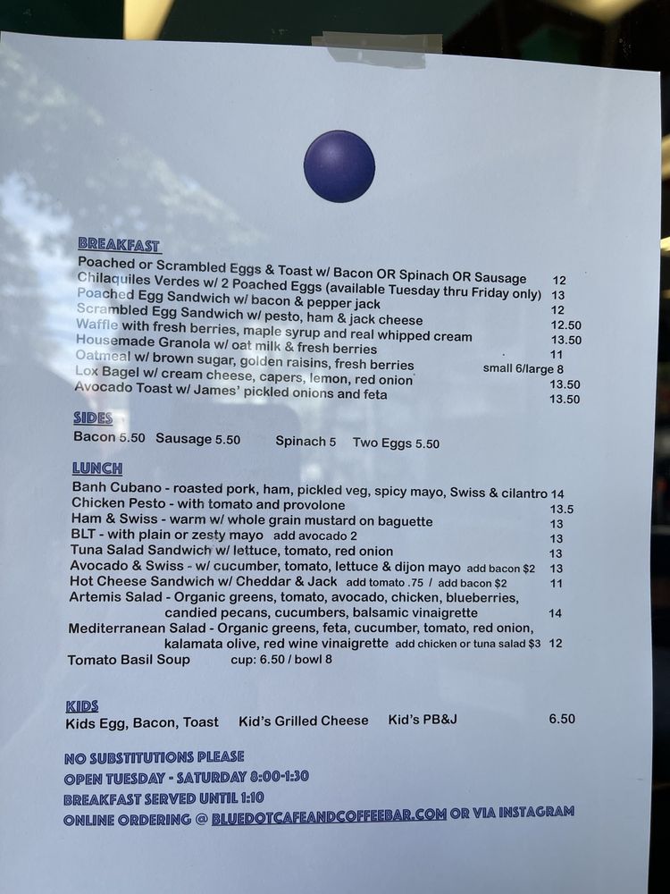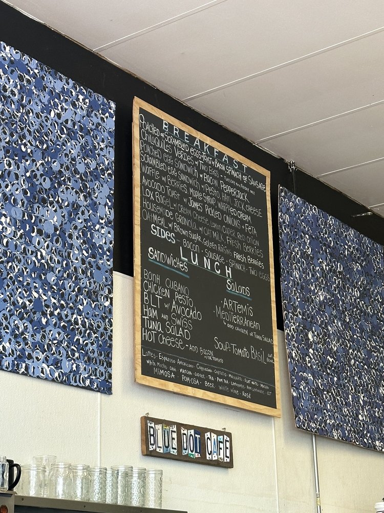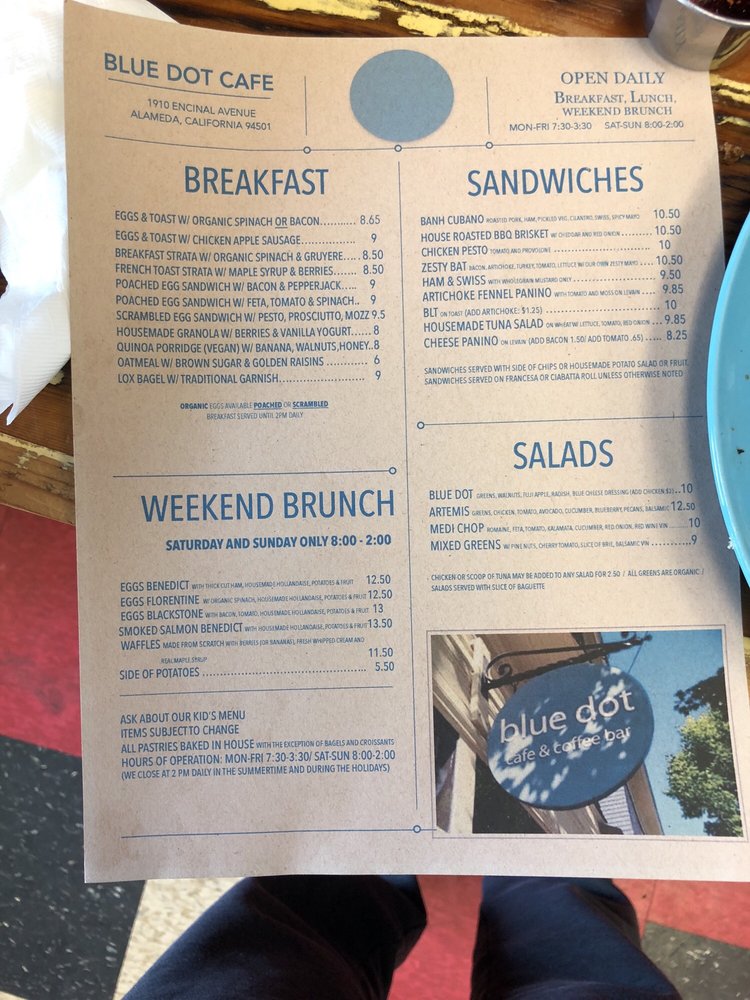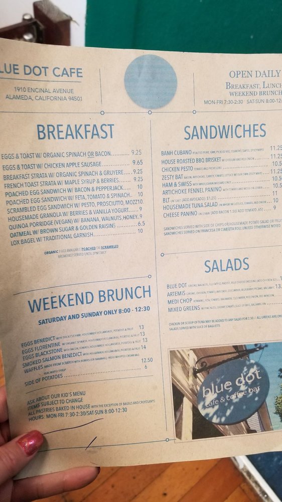 Introducing Blue Dot Cafe and Coffee Bar, a neighborhood gem in Alameda offering fresh and delicious breakfast and lunch options. The cafe, owned and operated by a friendly couple, features a comfortable lounge atmosphere with friendly and accommodating staff. The menu includes must-try dishes like Chilaquiles Verdes with Poached Eggs and Poached Egg Sandwich with bacon and pepper jack. Their pastry options are freshly made and not overly sweet, perfect to pair with their delicious coffee. The cafe is brightly decorated with art from local artists, creating a vibrant and welcoming ambiance. With free Wi-Fi, outdoor seating, and gender-neutral restrooms, Blue Dot Cafe caters to a diverse clientele. Whether you're looking for a quick bite, take out, or a relaxing meal with friends and family, Blue Dot Cafe and Coffee Bar offers a delightful dining experience you won't want to miss.